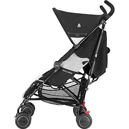 Esse carrinho pode ser fechado de forma automática, com apenas uma mão e pode ser transportado por uma alça. Fica bem compacto quando fechado e pode ser carregado por uma alça. Possui cesto porta-objetos e além disso acopla o organizador universal Maclaren com porta-copos e outros espaços.