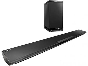 Com Design Compacto e simples de instalar, você consegue conectá-lo tudo através do bluetooth via SoundConnect. A marca ainda disponibiliza o Samsung Audio Remote, aplicativo criado para o controle das funções do Sound bar. Seu subwoofer é discreto e se mostrou eficiente no controle dos graves. Seu ponto negativo fica pela baixa potência, de apenas 130 W.